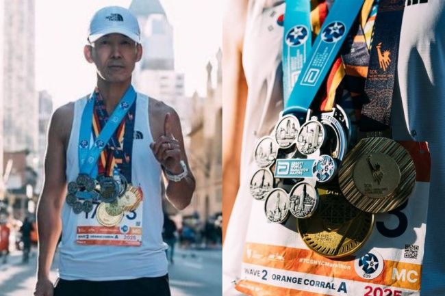 [션 인스타그램] 힙합 그룹 ‘지누션’ 멤버 션(53)이 세계 7대 마라톤을 1년 만에 모두 완주했다. 3일 션은 SNS에 “세계 7대 마라톤을 1년에 모두 완주했습니다”라는 글과 함께 여러 장의 사진을 올렸다. 사진 속 션은 각 대회의 완주 메달을 목에 걸고 뉴욕 도심 거리에서 포즈를 취하고 있다. 그가 달린 코스는 도쿄, 보스턴, 런던, 베를린, 시카고