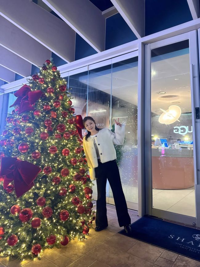 사진 = 송가인 인스타그램 행사비가 3500만원으로 알려진 가수 송가인의 따뜻한 일상이 눈길을 끈다. 최근 송가인은 자신의 인스타그램에 "열심히 일하고! 맛있는거 먹고! 화이팅!!!!!"이라는 멘트와 사진을 올렸다. 사진 속 송가인은 빨간 장식과 조명이 반짝이는 대형 크리스마스트리 옆에 서서 브이 포즈를 취했다. 화이트 톤의 재킷에 블랙 팬츠를 매치해 깔끔
