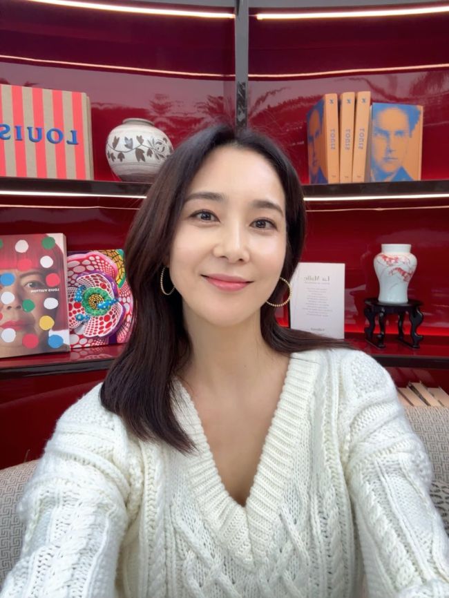사진 = 장가현 인스타그램 배우 장가현이 동안 미모가 돋보이는 근황을 공개했다. 최근 장가현은 자신의 인스타그램에 "르카페루이비통"라는 멘트와 사진을 올렸다. 공개된 사진 속 장가현은 레드 톤의 진열장 앞에서 카메라를 응시하며 미소를 지었다. 화이트 케이블 니트 상의를 입고 링 귀걸이를 매치해 깔끔한 분위기를 연출했고 진열장에는 책과 오브제, 화병 등이 놓