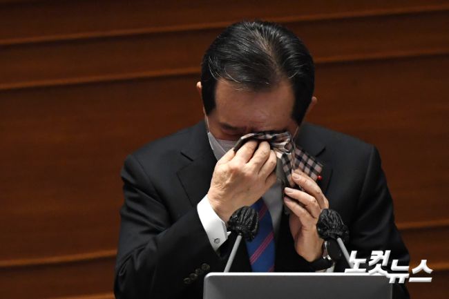 CBS노컷뉴스 강보현 기자 정세균 국무총리가 8일 코로나19로 5주째 문을 닫은 헬스장 사연에 끝내 눈물을 흘렸다. 정 총리는 이날 국회 코로나19 방역·백신 긴급현안질문에서 정의당 배진교 의원으로부터 인천의 한 자영업자의 사연을 듣고는 "자영업자의 눈물을 어떻게 닦아줄 것인가…"라며 말을 잇지 못했다. 정세균 국무총리가 8일 오전 서울 여의도 국회 본회의