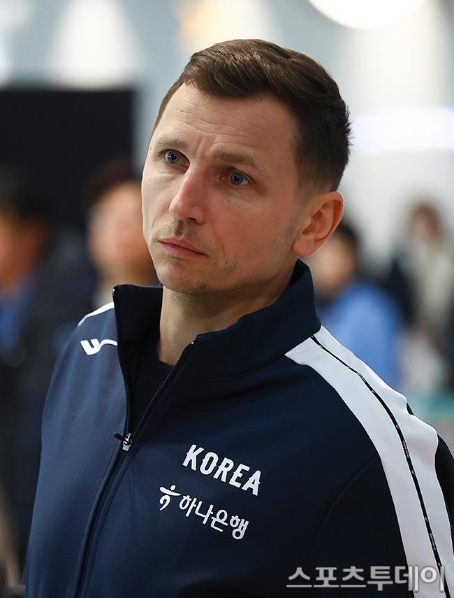남자농구 대표팀 니콜라이스 마줄스 감독이 농구 월드컵(FIVA) 아시아예선을 위해 24일 인천국제공항을 통해 출국하고 있다. 2026.02.24. [스포츠투데이 팽현준 기자 sports@stoo.com]
