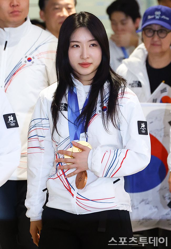 한국 동계올림픽 대표팀이 밀라노 코르티나 동계올림픽을 끝내고 24일 인천국제공항을 통해 귀국하며 인사하고 있다. 2026.02.24. [스포츠투데이 팽현준 기자 sports@stoo.com]