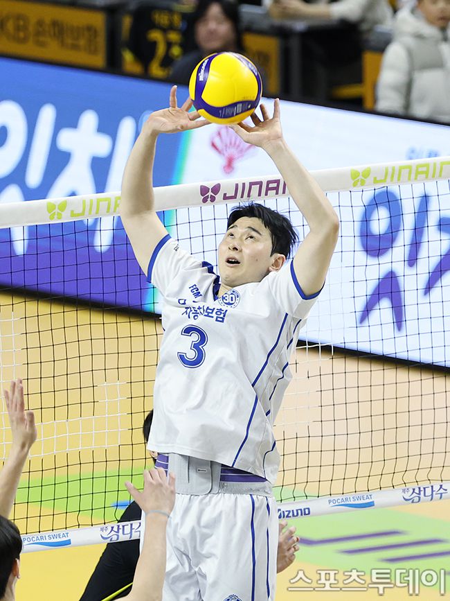 2025-2026 진에어 V-리그 남자부 KB손해보험-삼성화재 경기가 24일 경기도 의정부시 경민대 체육관에서 열렸다. 삼성화재 노재욱이 토스를 하고 있다. 2026.02.24. [스포츠투데이 권광일 기자 sports@stoo.com]