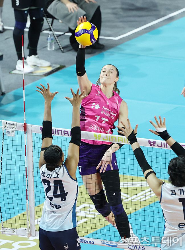 2025-2026 진에어 V-리그 여자부 흥국생명-GS칼텍스 경기가 26일 인천 삼산월드체육관에서 열렸다. 흥국생명 레베카가 스파이크를 때리고 있다. 2026.02.26. [스포츠투데이 권광일 기자 sports@stoo.com]