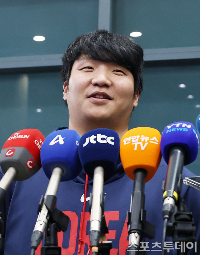 16일 오전 WBC 야구대표팀이 인천공항 제1터미널을 통해 귀국했다. 문보경이 귀국해 인터뷰를 하고 있다. 2026.03.16. [스포츠투데이 권광일 기자 sports@stoo.com]
