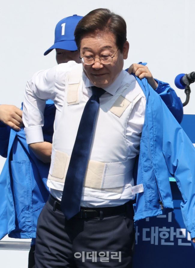 [포토]운동복 안에 방검복 입은 이재명 대선 후보