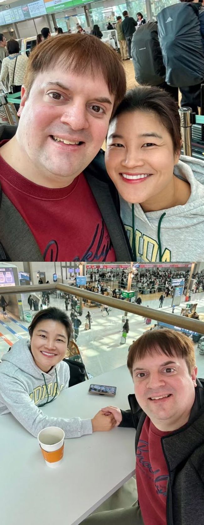 사진=김혜선 SNS 코미디언 김혜선이 남편 스테판과 잠시 이별을 알렸다. 김혜선은 31일 자신의 SNS에 “국제 부부의 비애. 헤어짐은 늘 아쉬워. 잘가 여보 곧 만나요”라는 문구와 함께 여러 장의 사진을 게재했다. 공개된 사진 속 김혜선은 공항에서 출국을 기다리는 남편 스테판을 마중나간 모습이다. 특히 두 사람은 손을 꼭 잡고 있거나 얼굴을 맞대고 미소를
