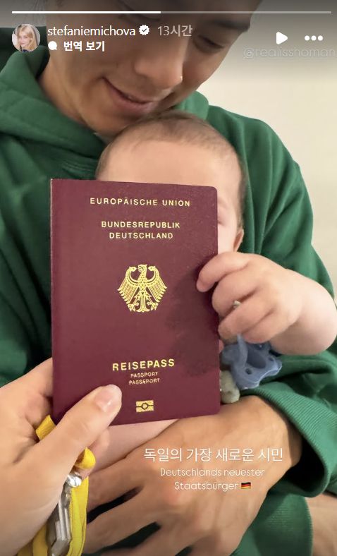 사진= 미초바 SNS 래퍼 빈지노의 아들 근황이 공개돼 눈길을 끌고 있다. 29일 빈지노의 아내이자 독일 출신 모델 스테파니 미초바는 자신의 SNS에 “독일의 가장 새로운 시민”이라는 문구와 함께 아들의 사진을 게재했다. 공개된 사진 속에서 빈지노는 아들을 품에 안고 환하게 미소짓고 아들은 조그만 손으로 독일 여권을 쥐고 있어 시선을 끌었다. 독일 국적법에