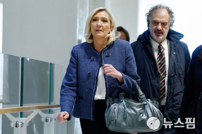 [파리 로이터=뉴스핌] 장일현 특파원 = 프랑스 극우정당 국민연합(RN)의 마린 르펜 원내대표가 31일(현지시간) 프랑스 파리 법원에 출두하고 있다. 2025.03.31 hjang67@newspim.com 저작권자(c) 글로벌리더의 지름길 종합뉴스통신사 뉴스핌(Newspim), 무단 전재-재배포 금지