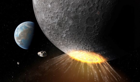 [서울신문 나우뉴스] 38억년 전 달에 소행성이 떨어지는 모습을 묘사한 그래픽 이미지. Lunar and Planetary Institute/Daniel D. Durda 수십 억 년 전 소행성이 달과 충돌해 그랜드 캐니언과 같은 거대한 협곡 2개가 단 10분 만에 만들어졌다는 연구결과가 나왔다. 5일(현지시간) AP, 로이터 통신 등 외신은 달의 남극 인근