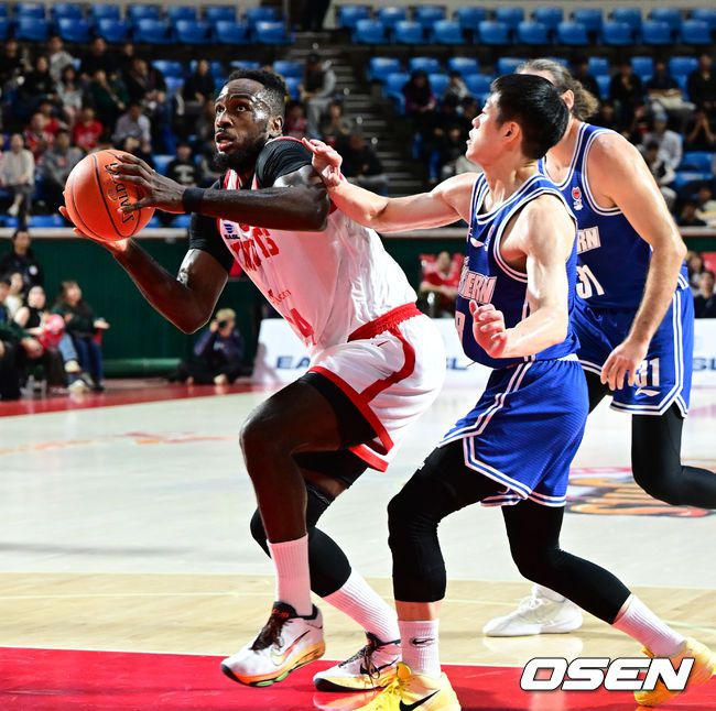 2025-2026 동아시아 슈퍼리그 (EASL) 서울 SK 와 홍콩 이스턴의 경기가 열렸다. SK는 1패를 안고 있고, 홍콩 이스턴은 EASL 시즌 첫 경기다. 1쿼터 SK 자밀 워니가 돌파하고 있다. 2025.11.12 /cej@osen.co.kr
