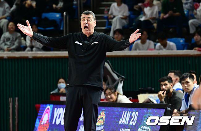 12일 서울 송파구 학생체육관에서 2025-2026 동아시아 슈퍼리그 (EASL) 서울 SK 와 홍콩 이스턴의 경기가 열렸다. SK는 1패를 안고 있고, 홍콩 이스턴은 EASL 시즌 첫 경기다. 홍콩 바이라모비치 감독이 판정에 어필하고 있다. 2025.11.12 /cej@osen.co.kr