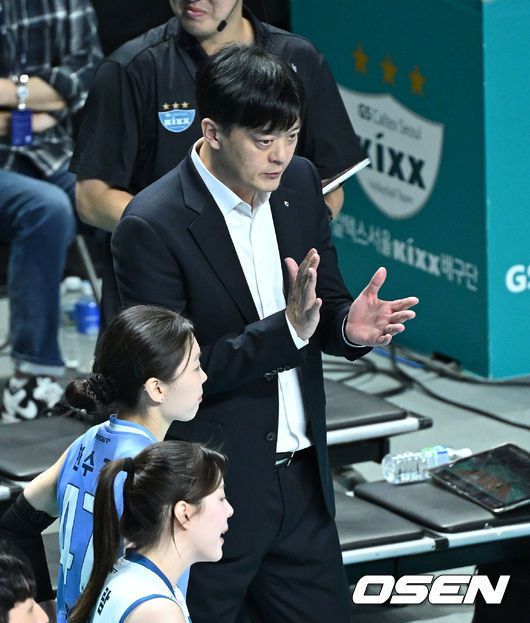 5일 오후 서울 장충체육관에서 프로배구 진에어 2025~26 V리그 GS칼텍스와 페퍼저축은행의 경기가 열렸다. 페퍼저축은행은 6승 5패 승점 17점으로 리그 4위, GS칼텍스는 5승 6패 승점 16점으로 5위에 올라 있다. 2세트 GS칼텍스 이영택 감독이 선수들에게 박수를 보내고 있다. 2025.12.05 /sunday@osen.co.kr
