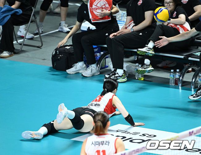 서울 GS칼텍스는 5일 서울 중구 장충체육관에서 열린 진에어 2025-2026 V-리그 여자부 광주 페퍼저축은행과의 경기에서 세트 스코어 3-0(25-20, 27-25, 25-21)으로 승리했다. 1세트 페퍼저축은행 박은서가 수비를 하고 있다. 2025.12.05 /sunday@osen.co.kr