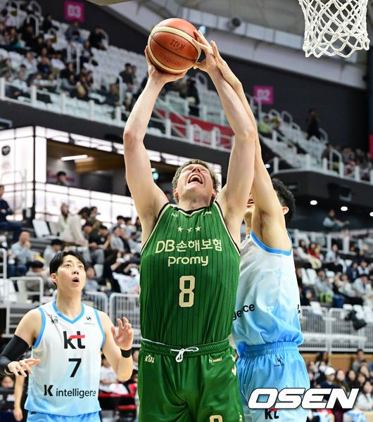 19일 오후 수원 KT 소닉붐 아레나에서 2025-2026 LG전자 프로농구 수원 KT와 원주 DB의 경기가 열렸다. KT는 11승 11패(6위), DB는 12승 9패(4위)를 기록중이다.1쿼터 DB 헨리 엘런슨이 슛을 시도하고 있다. 2025.12.19 /jpnews@osen.co.kr