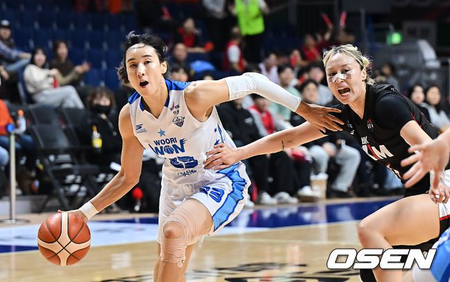 19일 부산 사직실내체육관에서 BNK금융 2025~2026 여자프로농구 부산 BNK와 아산 우리은행의 경기가 열렸다. 시즌 첫 3연승을 달리고 있는 부산 BNK와 아산 우리은행이 연승 행진을 이어가기 위해 맞대결을 펼친다. 아산 우리은행 김단비가 부산 BNK 김소니아의 마크를 피해 골밑돌파를 시도하고 있다. 2025.12.19 / foto0307@osen.