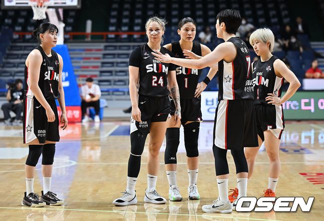 19일 부산 사직실내체육관에서 BNK금융 2025~2026 여자프로농구 부산 BNK와 아산 우리은행의 경기가 열렸다. 시즌 첫 3연승을 달리고 있는 부산 BNK와 아산 우리은행이 연승 행진을 이어가기 위해 맞대결을 펼친다. 부산 BNK 박혜진이 선수들을 독려하고 있다. 2025.12.19 / foto0307@osen.co.kr
