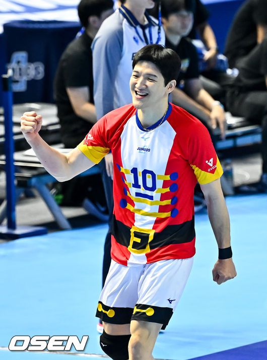 19일 오후 인천 계양체육관에서 진에어 2025-2026 V리그 남자부 대한항공과 한국전력의 경기가 진행됐다. 홈팀 대한항공은 1위(12승 2패·승점 34), 어웨이팀 한국전력은 5위(8승 6패·승점 22)에 위치하고 있다. 2세트 대한항공 정지석이 득점 후 기뻐하고 있다. 2025.12.19 / soul1014@osen.co.kr