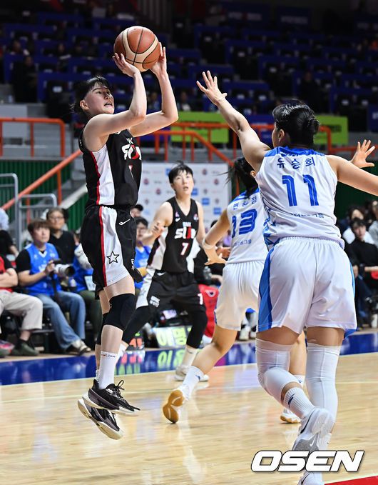 19일 부산 사직실내체육관에서 BNK금융 2025~2026 여자프로농구 부산 BNK와 아산 우리은행의 경기가 열렸다. 시즌 첫 3연승을 달리고 있는 부산 BNK와 아산 우리은행이 연승 행진을 이어가기 위해 맞대결을 펼친다. 부산 BNK 이소희가 아산 우리은행 유승희의 마크를 피해 골밑슛을 시도하고 있다. 2025.12.19 / foto0307@osen.co