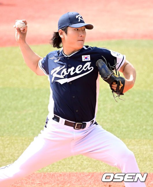 2026 WBC(월드베이스볼클래식)를 준비하는 대한민국 야구 대표팀이 23일 일본 오키나와 가데나 야구장에서 프로야구 한화 이글스와 연습경기를 펼쳤다. 야구 대표팀은 오키나와에서 국내 팀들과 6차례 연습경기를 치르며 전력을 끌어올릴 예정이다. 대표팀 선발 곽빈이 힘차게 공을 뿌리고 있다. 2026.02.23 / dreamer@osen.co.kr