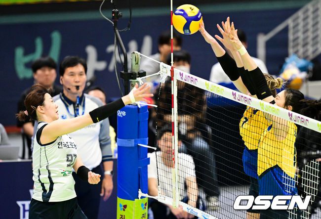 24일 수원체육관에서 ‘진에어 2025~2026 프로배구 V리그’ 여자부 현대건설과 한국도로공사의 경기가 열렸다. 현대건설은 19승11패(승점 56)로 리그 2위를, 한국도로공사는 21승 9패(승점59)로 1위를 기록 중이다. 1세트 한국도로공사 강소휘가 강타를 하고 있다. 2026.02.24 /cej@osen.co.kr