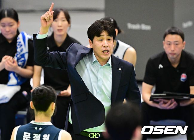 24일 수원체육관에서 ‘진에어 2025~2026 프로배구 V리그’ 여자부 현대건설과 한국도로공사의 경기가 열렸다. 현대건설은 19승11패(승점 56)로 리그 2위를, 한국도로공사는 21승 9패(승점59)로 1위를 기록 중이다. 1세트 한국도로공사 김종민 감독이 작전을 지시하고 있다. 2026.02.24 /cej@osen.co.kr
