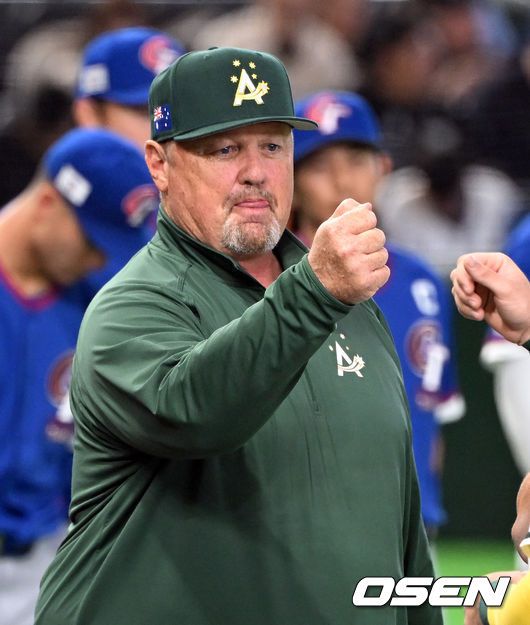 5일 일본 도쿄돔에서 월드베이스볼클래식(WBC) 조별리그 첫 경기 호주와 대만의 경기가열렸다. 우리 대표팀은 체코와 WBC 조별리그 1차전에서 격돌한다. 데이브 닐슨 호주 감독이 선수들과 주먹을 마주치고 있다. 2026.03.05/spjj@osen.co.kr