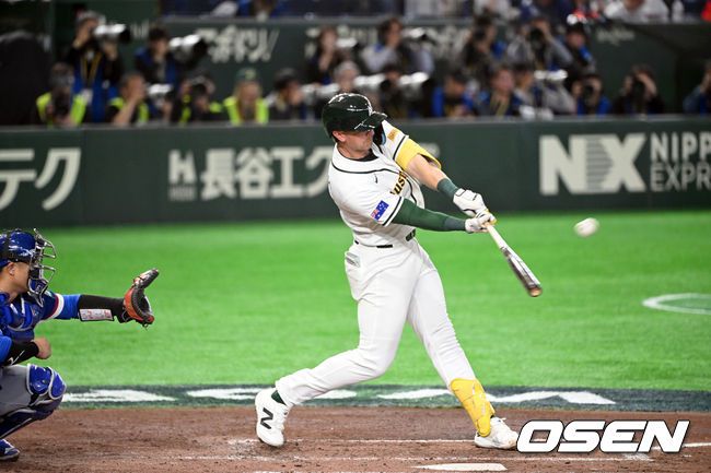 5일 일본 도쿄돔에서 월드베이스볼클래식(WBC) 조별리그 첫 경기 호주와 대만의 경기가열렸다. 우리 대표팀은 체코와 WBC 조별리그 1차전에서 격돌한다. 5회말 무사 로비 퍼킨스가 투런 홈런을 치고 있다. 2026.03.05/spjj@osen.co.kr
