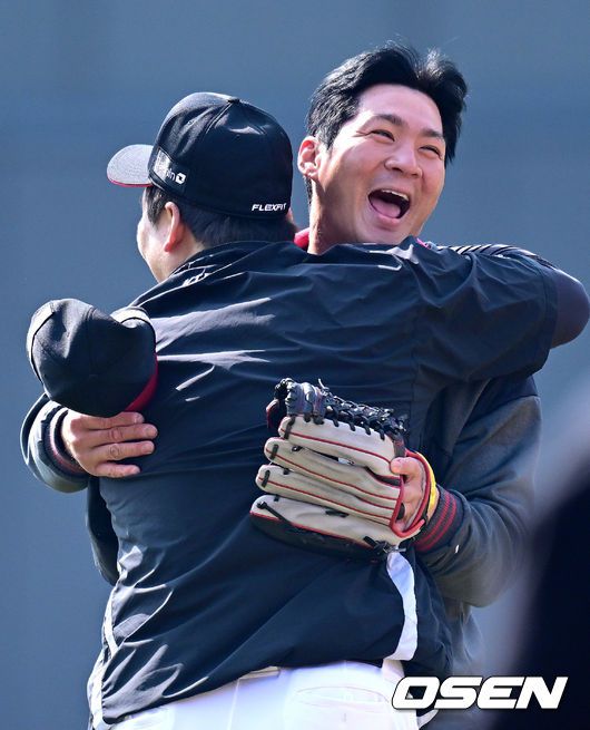 16일 경기도 수원 KT위즈파크에서 ‘2026 신한 SOL KBO리그’ 시범경기 KT 위즈와 LG 트윈스의 경기가 열린다. 시범경기는오는 24일까지 각 팀당 12경기씩 총 60경기가 펼쳐진다. 경기를 앞두고 KT 김현수가 LG 오지환과 인사를 나누고 있다. 2026.03.16 / dreamer@osen.co.kr