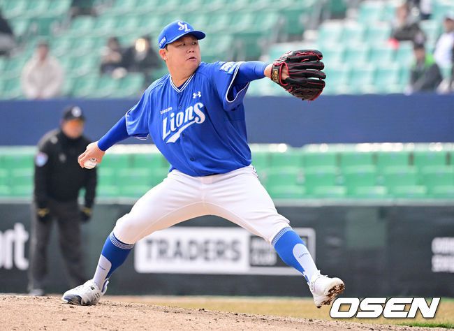 16일 인천 SSG랜더스필드에서 ‘2026 신한 SOL KBO리그’ 시범경기 SSG 랜더스와 삼성 라이온즈의 경기가 열렸다. 시범경기는오는 24일까지 각 팀당 12경기씩 총 60경기가 펼쳐진다. 7회말 삼성 이승현이 역투하고 있다. 2026.03.16/ jpnews@osen.co.kr