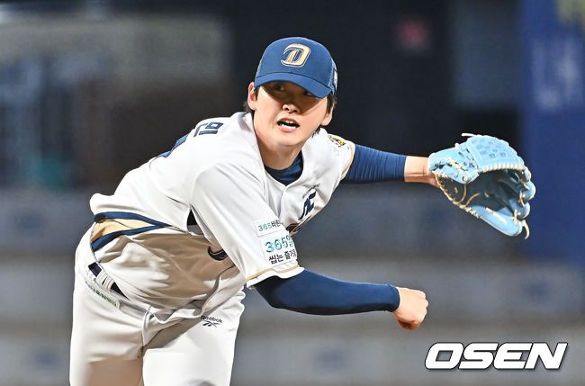 16일 창원NC파크에서 2026 신한 SOL KBO 리그 시범경기 NC 다이노스와 KIA 타이거즈의 경기가 열렸다. 홈팀 NC는 구창모가, 방문팀 KIA는 황동하가 선발 출전했다. NC 다이노스 전사민이 역투하고 있다. 2026.03.16 / foto0307@osen.co.kr