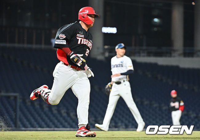 16일 창원NC파크에서 2026 신한 SOL KBO 리그 시범경기 NC 다이노스와 KIA 타이거즈의 경기가 열렸다. 홈팀 NC는 구창모가, 방문팀 KIA는 황동하가 선발 출전했다. KIA 타이거즈 한준수가 7회초 무사 우월 솔로 홈런을 치고 그라운드를 돌고 있다. 2026.03.16 / foto0307@osen.co.kr