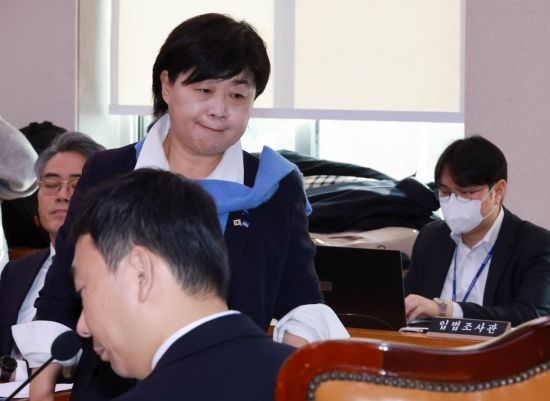 서영교 더불어민주당 의원이 19일 국회에서 열린 법제사법위원회 법안심사소위원회에서 나서고 있다. 서 의원은 이날 법사위 법안심사 도중 취재진 앞에 나와 "담당 직능단체 대한변협과 만났고, 쿠팡 관계자와 만나지 않았다"며 "마치 쿠팡 관계자와 의도적으로 만난 것처럼 쓰여진 문자 관련해서는 법적 조치를 검토하겠다"고 말했다. <ⓒ투자가를 위한 경제콘텐츠 플랫폼