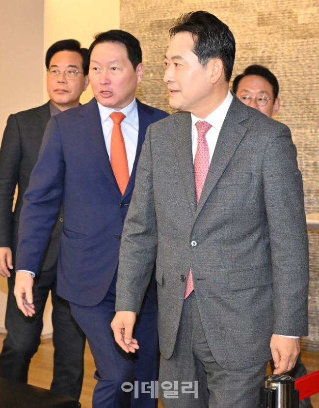 [포토] 정책간담회 입장하는 장동혁 대표와 최태원 회장
