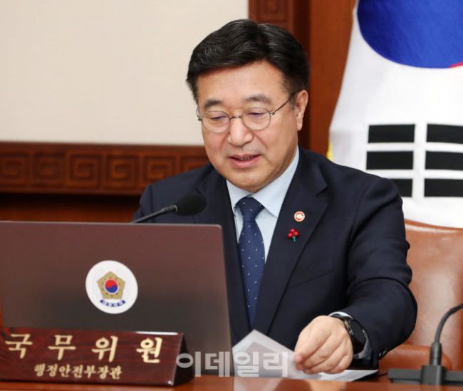 윤호중 행정안전부 장관이 25일 오전 서울 종로구 정부서울청사에서 열린 국무회의에서 발언을 하고 있다.