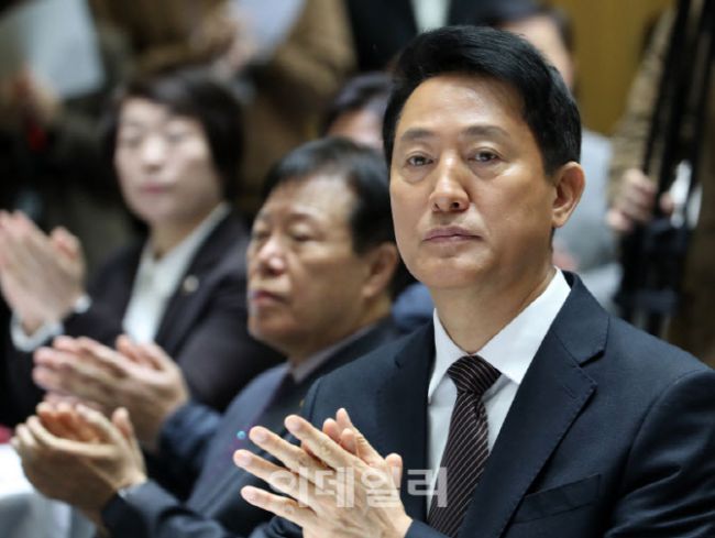 오세훈 서울시장이 16일 서울시청에서 열린 ‘강북횡단 지하도시고속도로 정책협의체 발족식’에 참석하고 있다. 서울시는 내부순환로 성산IC부터 북부간선도로 신내IC까지 20.5km 구간 낡은 고가차도를 철거하고 지하에 2037년까지 도시공간을 재편할 계획이다. 협의체는 6개 자치구 대표와 분야별 전문가로 구성되어 타당성과 대안을 검토하게 된다. 오세훈 시장은