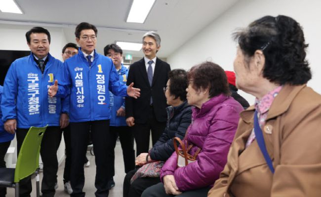 정원오 더불어민주당 서울시장 예비후보가 13일 서울 구로구 궁동종합사회복지관에 방문해 시민들과 인사를 나누고 있다. 정원오 더불어민주당 서울시장 예비후보가 13일 서울 구로구 궁동종합사회복지관에 방문해 시민들과 인사를 나누고 있다.