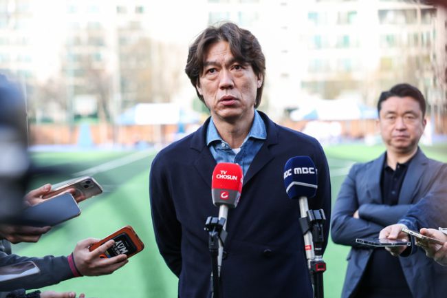홍명보 감독. 사진 | 대한축구협회 축구대표팀 홍명보 감독이 고등리그 현장을 직접 찾았다. 홍 감독은 4일 서울 영등포구 장훈고등학교에서 장훈고와 동북고의 2025 전반기 고등리그 첫 경기를 방문했다. 양 팀 선수단과 인사를 나눈 뒤 자리에 앉아 박건하, 김진규 등 코치진들과 함께 경기를 지켜봤다. 홍 감독은 명단을 유심히 보며 선수 한 명 한 명을 관찰했