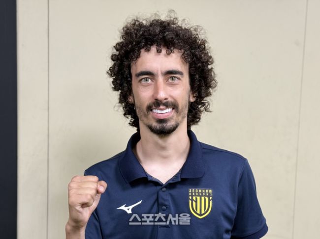 전남 드래곤즈 발디비아가 22일 광양축구전용구장에서 열린 김포와의 경기 후 인터뷰에 응하고 있다.광양 | 정다워 기자 K리그2 MVP 출신 발디비아(전남 드래곤즈)가 활약해야 팀도 살아난다. 발디비아는 2023년 K리그2에서 MVP를 받았던 에이스다. 첫 시즌 14골 14도움이라는 괴물 같은 성적으로 K리그에 데뷔했다. 지난해에도 12골 5도움으로 뛰어난
