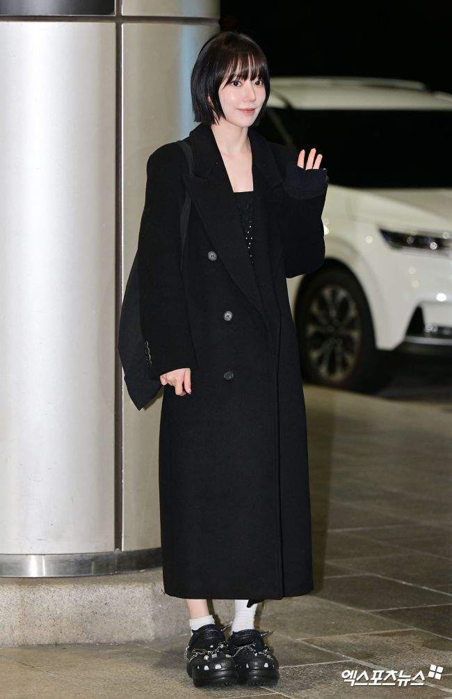 그룹 르세라핌 사쿠라와 홍은채가 해외일정 차 13일 오후 김포국제공항을 통해 일본으로 출국했다. 출국 전 포즈 취하는 르세라핌 사쿠라. 김한준 기자 kowel@xportsnews.com