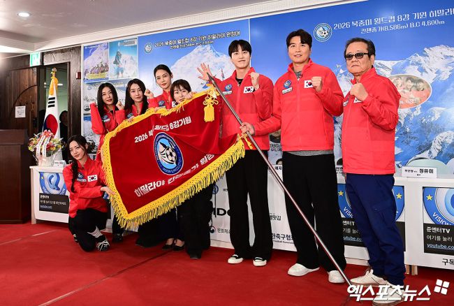 5일 오후 서울 신길동 비전Q 프로덕션 사옥에서 2026 북중미 월드컵 8강 기원 '히말라야에서 기원하다' 발대식이 진행됐다. 이날 행사에 참석한 이동국, 안현모, 예지원, 정유미, 원더걸스 유빈, 박해린 등이 포토타임을 갖고 있다. 박지영 기자 jypark@xportsnews.com