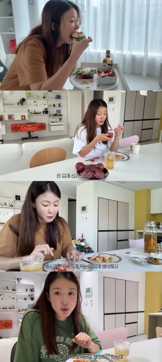 둘째를 임신 중인 배우 이시영이 건강식을 공개했다. 1일 채널 ‘뿌시영’에는 ‘임신 8개월에 4kg 찐 이유’라는 영상이 게재됐다. 이시영은 임신 중에도 체중 변화를 최소화한 자신만의 다이어트 레시피를 공개했다. 이시영은 특히 백화점에서 산 바질 페스토를 공개하며 이것 때문에 샌드위치가 먹고 싶을 정도라고 설명했다. 또 이시영은 백향과를 공개하며 “제철이라