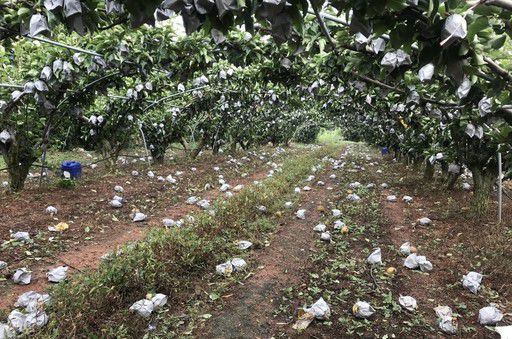 태풍 ‘바비’가 지나간 27일 전남 신안군 압해읍 복룡리 과수원에 태풍의 강한 바람으로 배들이 떨어져 있다. 독자 제공 제8호 태풍 바비의 영향으로 전남에서 방파제가 파손되는 등 피해가 발생했으나 다른 중대형 태풍 때보다는 적은 것으로 나타났다. 태풍 바비는 역대 5위급 강풍을 동반한 태풍이자 유사한 경로로 이동한 2019년 태풍 링링보다 강도가 더 셀 것