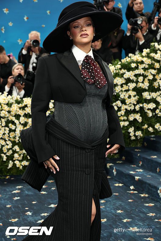 가수 리한나가 셋째 임신을 공식화 했다. 5일(현지시간) 페이지식스 보도에 따르면 리한나는 남자친구의 세 번째 아이의 임신했다고 공개했다. 2025년 멧갈라 레드카펫에서 임신한 배를 과시해 눈길을 끌었다. 이날 리한나는 짧은 정장 재킷에 울 뷔스티에 톱, 허벅지 높이의 슬릿과 정장 재킷처럼 보이는 조각품 같은 버슬이 특징인 핀스트라이프 스커트를 입고 멋진