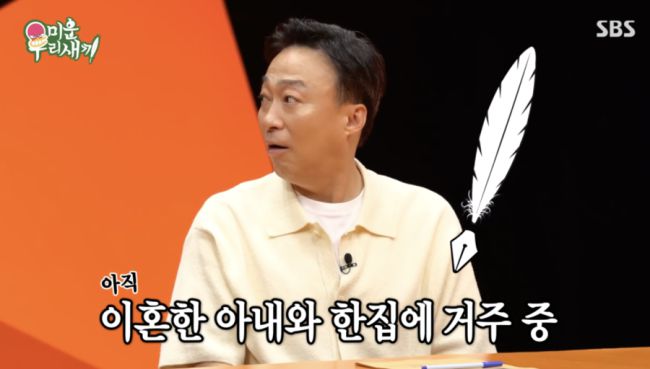 배우 이성민이 윤민수의 이혼 후 한집살이를 알고 경악했다. 7일 방송된 SBS 예능 프로그램 '미운 우리 새끼'('미우새)에는 배우 이성민이 게스트로 출연했다. 이날 윤민수의 에피소드가 시작되자 서장훈이 "집 반 쪽에 이혼하신 아내분이 살고 계시다"라고 소개했고, 이에 스튜디오에 있던 이성민은 깜짝 놀라 두 눈을 크게 뜨며 헉 소리를 냈다. 서장훈은 "집이