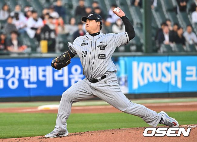 8일 부산 사직구장에서 2024 신한 SOL 뱅크 KBO 리그 롯데 자이언츠와 한화 이글스의 경기가 열렸다. 전날 우천 취소로 하루를 쉰 롯데는 3연승을 달리며 반즈를 선발로 투입하고 주축 타자들이 부진하며 9위로 추락해 반등을 위한 분위기 반전을 노려야 하는 한화는 베테랑 류현진을 선발로 투입했다.한화 이글스 선발 투수 류현진이 역투하고 있다. 2024.