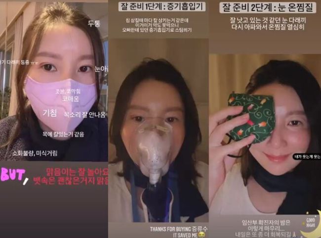 가수 팀의 아내 김보라가 자가격리 중인 근황을 전했다. 6일 김보라는 자신의 인스타그램 스토리를 통해 “두통, 갑자기 다래끼 통증. 눈 아픔, 콧물, 코막힘, 코 매움, 기침, 목소리 잘 안 나옴, 목에 칼 있는 거 같음. 소화불량, 메슥거림” 등 증상을 호소했다. 코로나 19에 확진된 김보라는 현재 임신 중이다. 이에 “맑음이(태명)는 잘 논다. 뱃속은