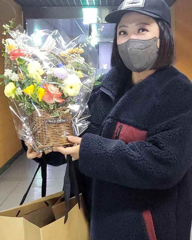 안영미가 김숙에게 꽃다발을 보냈다. 김숙은 11일 자신의 인스타그램에 "아픈 영미가 멀쩡한 나에게 꽃을 보냈다.. 아... 많이 아픈가 보다.. 꽃은 안 아픈 사람이 아픈 사람한테 보내는 거 아니였나??ㅜ.ㅜ #영미야 아프지 마 #오미크론 무섭네 빨리 돌아와라"라는 글과 함께 여러 장의 사진을 게재했다. 사진 속에는 안영미가 보낸 꽃을 들고 인증샷을 남기는