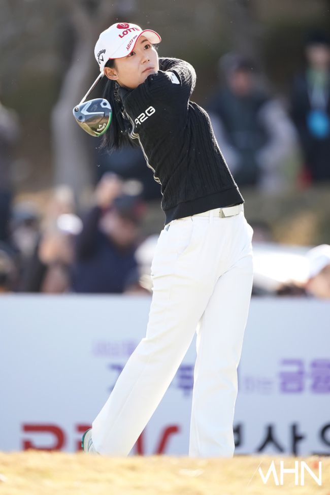 6일 부산에 위치한 아시아드 컨트리클럽에서 이벤트 대회 '2025 백송홀딩스 부산일보 채리티 매치 인 아시아드CC)'(우승 2억, 준우승 1억) 1라운드 경기가 열렸다. 상금에 50%는 기부금으로 전달 예정이다. 메디힐 박현경과 롯데 황유민 2경기가 열린 가운데, 황유민이 1번홀 경기를 펼치고 있다.