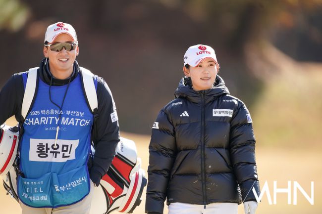 [mhn포토] 황유민, 캐디 박중근과 함께 이동